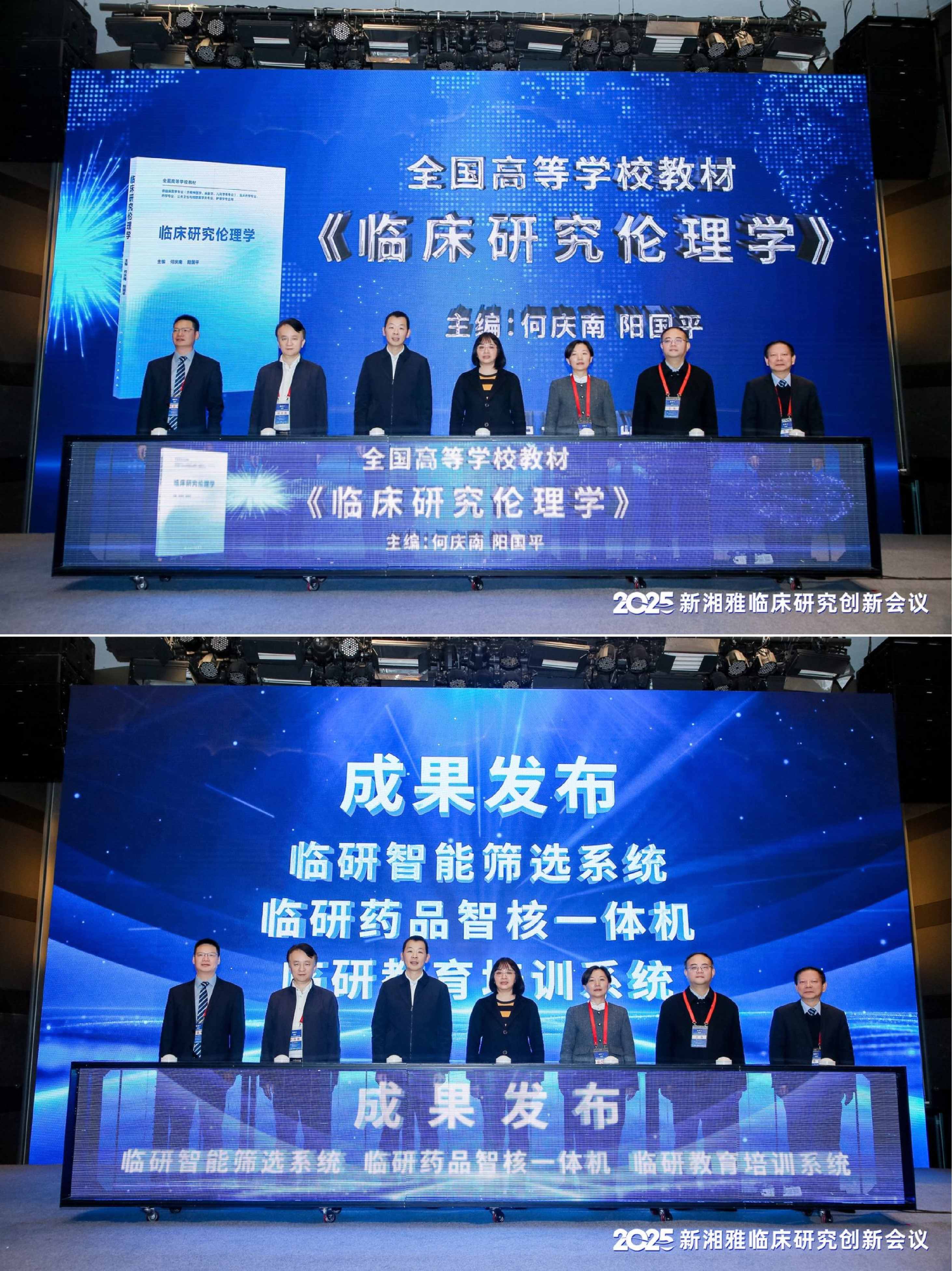 会上同步发布了两项聚焦“伦理规范”与“数智工具”的阶段性成果:一是由中南大学湘雅三医院党委书记何庆南与湘雅药学院院长阳国平联合主编的全国高等学校教材《临床研究伦理学》正式出版,为临床研究伦理实践提供了权威指导;二是由湘雅三医院临床试验研究中心主任郭成贤带领团队研发的“临研智能筛选系统”“临研药品智核一体机”“临研教育培训系统”三款数智化产品集中亮相,旨在以技术手段破解临床研究中的效率与管理难题。